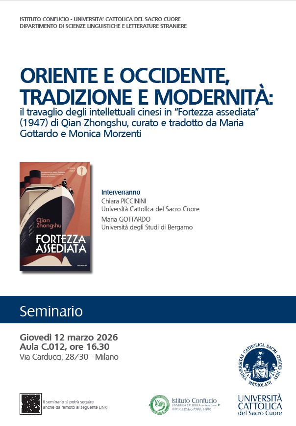 L’Istituto Confucio dell’Università Cattolica del Sacro Cuore, in collaborazione con il Dipartimento di Scienze Linguistiche e Letterature Straniere, organizza un seminario dedicato al celebre romanzo di Qian Zhongshu, recentemente curato e tradotto da Maria Gottardo e Monica Morzenti.